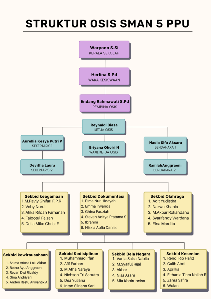 Sebagaimana organisasi pada umumnya, OSIS juga memiliki perangkat sendiri dengan bentuk dan fungsinya masing masing. Berikut adalah perangkat OSIS beserta fungsi yang diembannya: